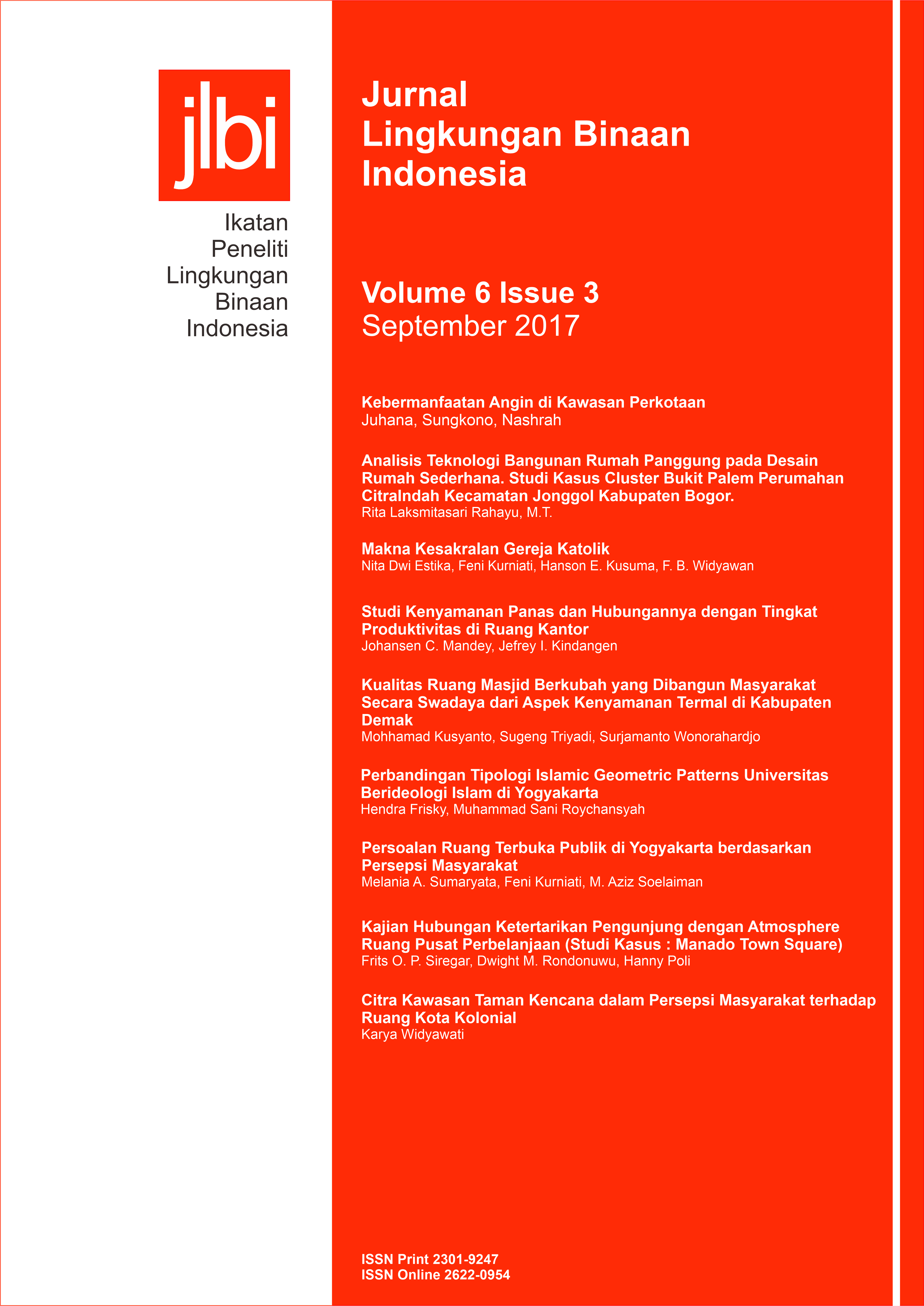 Edisi ini memuat sembilan artikel hasil penelitian. Artikel pertama berjudul "Kebermanfaatan Angin di Kawasan Perkotaan"; artikel kedua berjudul "Analisis Teknologi Bangunan Rumah Panggung pada Desain Rumah Sederhana Studi Kasus Cluster Bukit Palem Perumahan CitraIndah Kecamatan Jonggol Kabupaten Bogor"; artikel ketiga berjudul "Makna Kesakralan Gereja Katolik"; artikel keempat berjudul "Studi Kenyamanan Panas dan Hubungannya dengan Tingkat Produktivitas di Ruang Kantor"; artikel kelima berjudul "Kualitas Ruang Masjid Berkubah yang Dibangun Masyarakat Secara Swadaya dari Aspek Kenyamanan Termal di Kabupaten Demak"; artikel keenam berjudul "Perbandingan Tipologi Islamic Geometric Patterns Universitas Berideologi Islam di Yogyakarta"; artikel ketujuh berjudul "Persoalan Ruang Terbuka Publik di Yogyakarta berdasarkan Persepsi Masyarakat"; artikel kedelapan berjudul "Kajian Hubungan Ketertarikan Pengunjung dengan Atmosphere Ruang Pusat Perbelanjaan (Studi Kasus : Manado Town Square)"; artikel kesembilan berjudul "Citra Kawasan Taman Kencana dalam Persepsi Masyarakat terhadap Ruang Kota Kolonial"