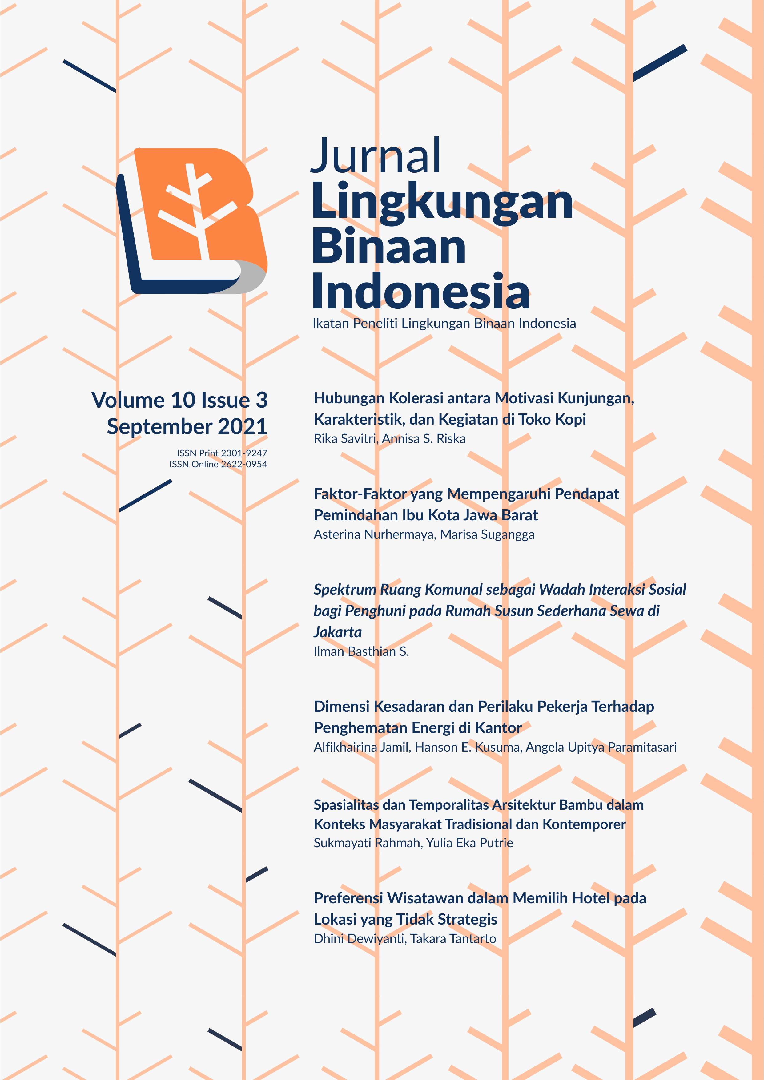 Volume ini memuat enam naskah. Penelitian mengenai motivasi penikmat kopi saat mengunjungi sebuah toko kopi diulas dalam naskah berjudul: Hubungan Kolerasi antara Motivasi Kunjungan, Karakteristik, dan Kegiatan di Toko Kopi. Naskah berjudul Faktor-Faktor yang Mempengaruhi Pendapat Pemindahan Ibu Kota Jawa Barat, merupakan penelitian yang dijaring melalui opini masyarakat terhadap rencana pemindahan lokasi ibukota Jawa Barat. Rumah Susun, sebuah ruang yang memiliki fenomena sosial yang beragam. Naskah berjudul: Spektrum Ruang Komunal sebagai Wadah Interaksi Sosial bagi Penghuni pada Rumah Susun Sederhana Sewa di Jakarta, mengungkapkan bagaimana ruang-ruang digunakan oleh penghuninya. Isu hemat energi, dibahas dalam penelitian Dimensi Kesadaran dan Perilaku Pekerja Terhadap Penghematan Energi di Kantor. Bambu sebagai material bangunan diangkat oleh penulis dalam topik berjudul: Spasialitas dan Temporalitas Arsitektur Bambu dalam Konteks Masyarakat Tradisional dan Kontemporer. Naskah terakhir adalah mengenai maraknya fenomena letak hotel saat ini, yang dianggap tidak strategis sebagai sebuah fungsi hotel, namun ternyata banyak diminati oleh turis saat ini. Preferensi turis inilah yang diungkapkan oleh penulis, sebagai bahan untuk masukan bagi perencana hotel di masa yang akan datang.